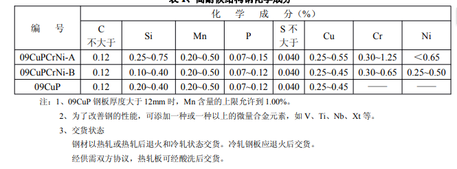 耐候鋼之高耐候結(jié)構(gòu)鋼化學(xué)成分及力學(xué)性能