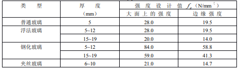 注:①夾層玻璃和中空玻璃的強(qiáng)度可按所采用的玻璃類型取用其強(qiáng)度。