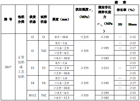 ②厚度小于等于0.7mm經鹽浴爐生產的退火板材,只能供應寬度小于或等于1200mm,長度小于或等于4000mm的板材。包覆層需包鋁的板材應進行雙面包覆,其包覆材料牌號及軋制后的包覆層厚度應符合表3的規定。