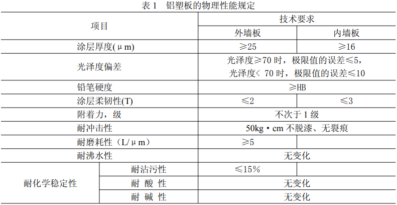 國家標準《鋁塑復合板》GB/T 1 7748 對復合鋁板的技術要求規定如下: